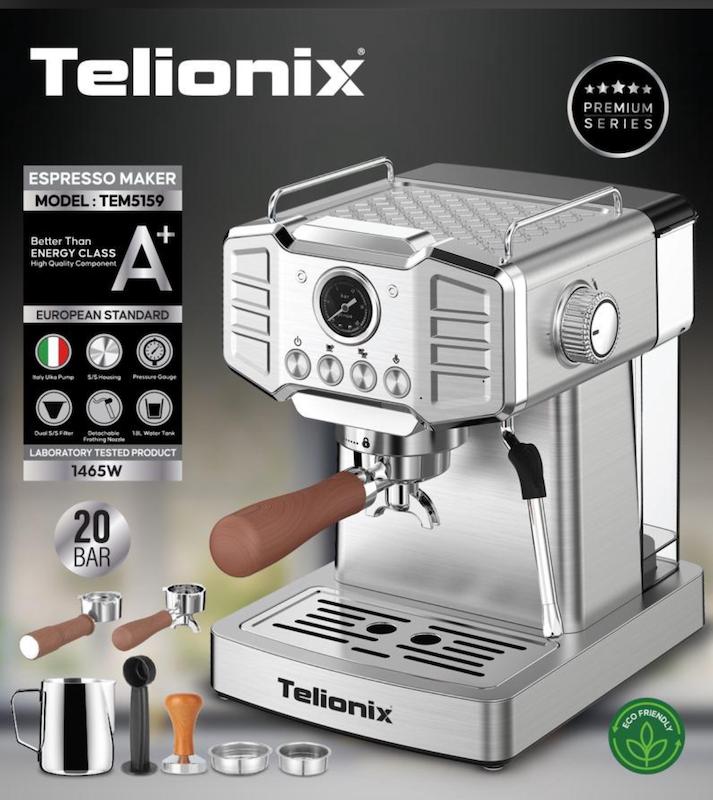 اسپرسوساز نیمهصنعتی تلیونیکس مدل TEM 5159 با فشار بخار بالا و طراحی مدرن، انتخابی عالی برای تهیه اسپرسو و نوشیدنیهای گرم در کافیشاپ یا منزل است.