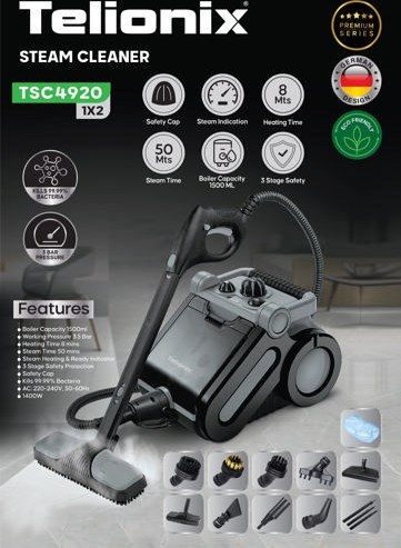 بخار شوی تلیونیکس مدل 4920 با توان بالا و طراحی مدرن، انتخابی عالی برای نظافت سریع و عمیق منزل بدون نیاز به مواد شیمیایی است.